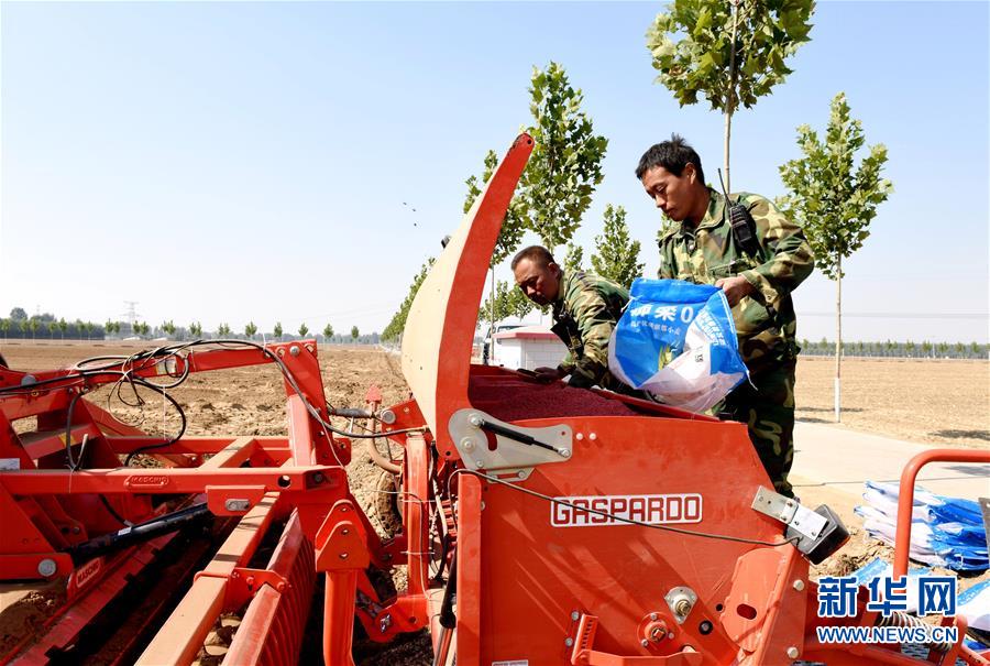 10月14日,河北省南和縣閆里鄉(xiāng)閆里村農(nóng)民將小麥種子倒入播種機。 新華社記者 朱旭東 攝