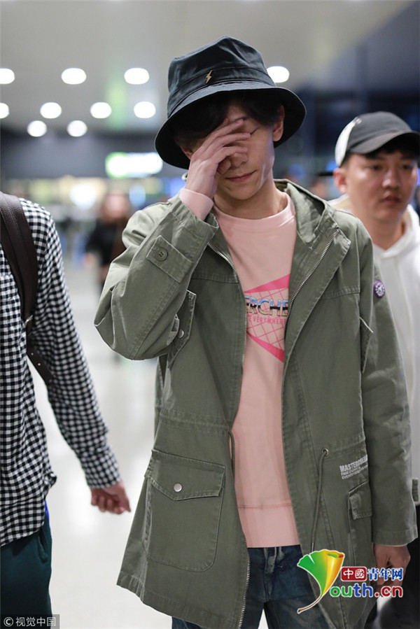 2018年10月14日,上海,張一山抵達上海機場。張一山戴漁夫帽眼袋嚴重瞬間老十歲, 用手擋臉似不愿上鏡。
