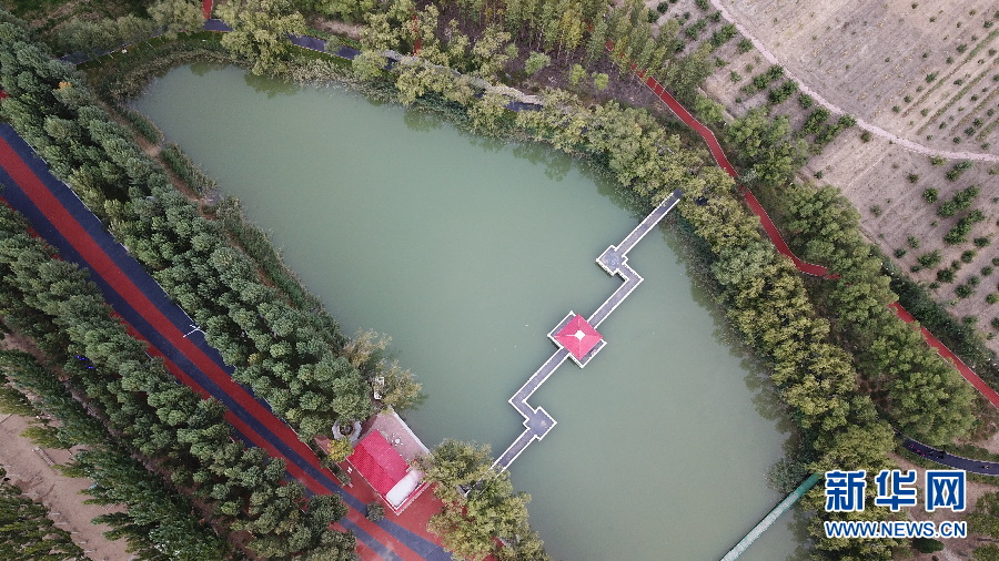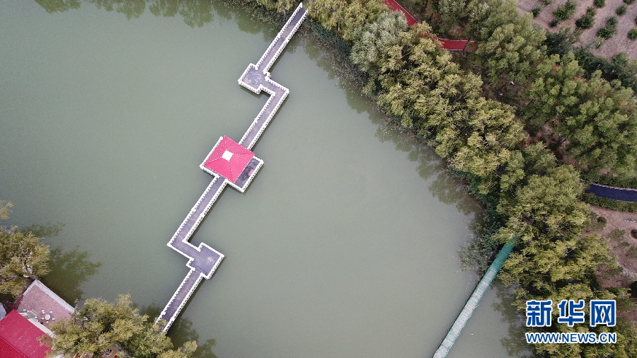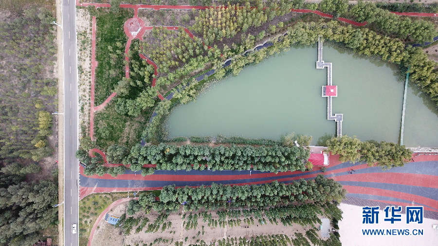 恩格貝生態(tài)示范區(qū)位于庫(kù)布齊沙漠中段,總面積200平方公里。這里曾經(jīng)風(fēng)沙肆虐,恩格貝生態(tài)示范區(qū)建設(shè)者經(jīng)過(guò)長(zhǎng)期艱苦奮斗,用雙手和鐵鍬“種”出一片人造沙漠綠洲,在沙漠里打造了一顆璀璨的生態(tài)明珠,如今這里是國(guó)家生態(tài)旅游示范區(qū)和國(guó)家4A級(jí)景區(qū)。月亮湖位于恩格貝生態(tài)示范區(qū)核心區(qū)域,周?chē)痪G色植被環(huán)繞,在無(wú)人機(jī)航拍視角下,猶如鑲嵌在沙漠綠洲里的一塊碧玉,呈現(xiàn)出大自然的和諧之美。(新華網(wǎng) 王宇 攝)