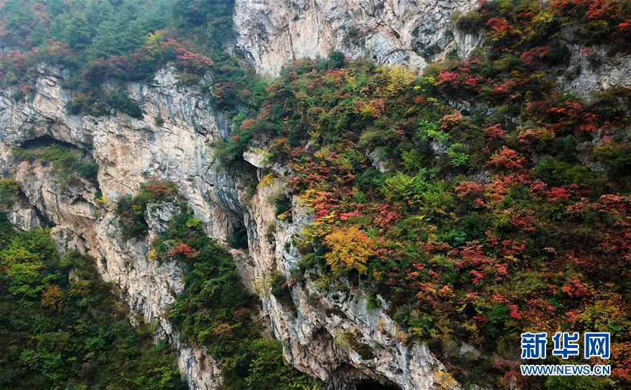 這是西狹頌景區(qū)秋景(10月16日無人機(jī)拍攝)。 新華社記者 陳斌 攝