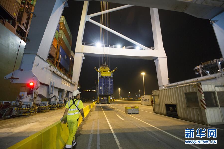 10月15日晚,中遠海運旗下的“中海火星”號集裝箱輪??吭诒壤麜r澤布呂赫港集裝箱碼頭。 新華社記者 葉平凡 攝