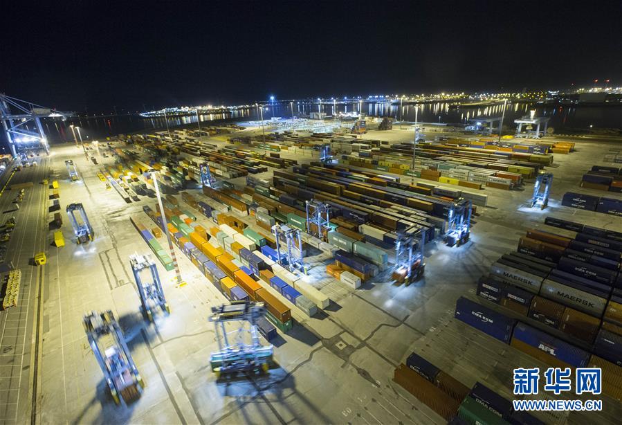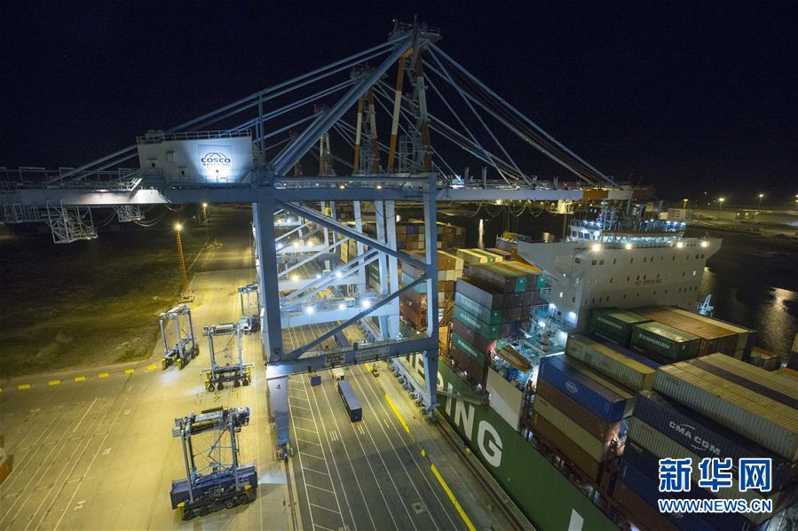 這是10月15日晚在比利時澤布呂赫港拍攝的正在進行裝卸作業(yè)的集裝箱碼頭。新華社記者 葉平凡 攝