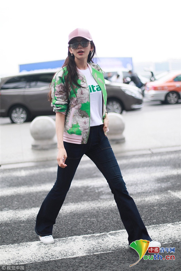 2018年10月16日,上海,林志玲亮相機(jī)場,她身穿綠色印花外套搭配粉色鴨舌帽十分清新靚麗,乖乖坐小車抿嘴甜笑比V嘟嘴頻賣萌。