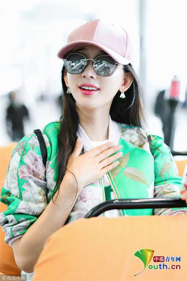 2018年10月16日,上海,林志玲亮相機(jī)場(chǎng),她身穿綠色印花外套搭配粉色鴨舌帽十分清新靚麗,乖乖坐小車抿嘴甜笑比V嘟嘴頻賣萌。