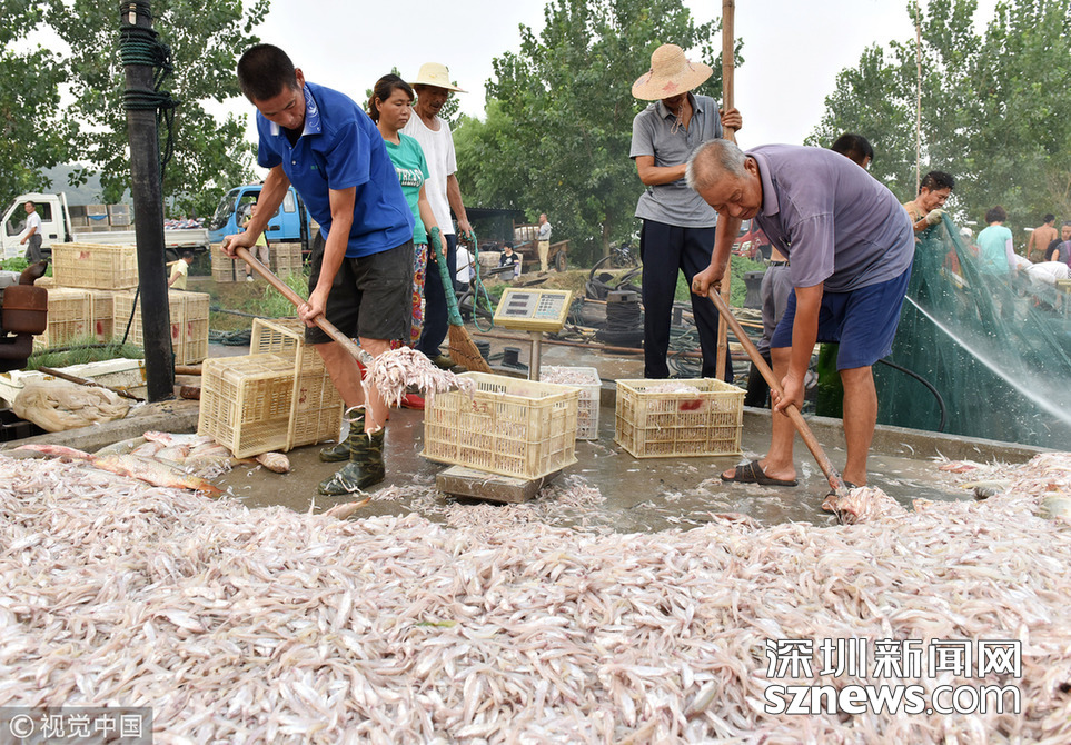 2018年8月16日,安徽巢湖漁民正在裝運(yùn)捕撈上來(lái)的毛魚和銀魚。