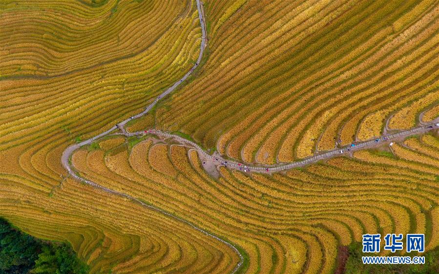 這是10月16日無(wú)人機(jī)拍攝的龍脊梯田秋色。金秋時(shí)節(jié),廣西龍勝各族自治縣龍脊梯田美如畫卷。 新華社記者 黃孝邦 攝