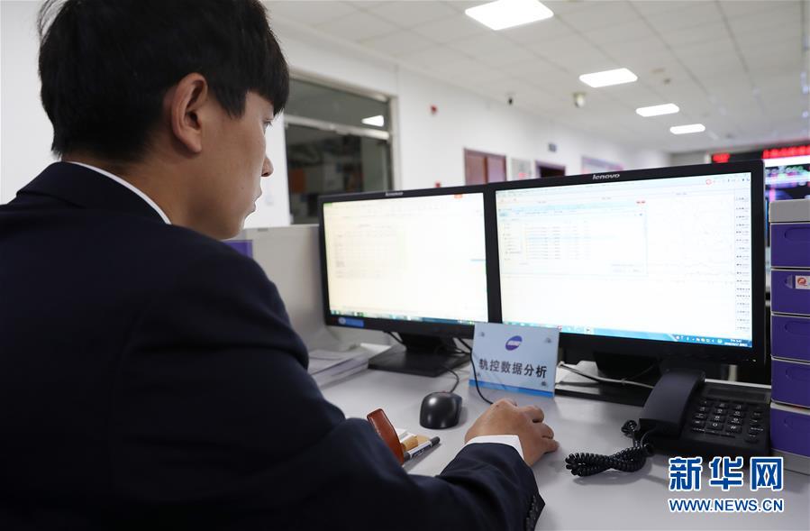 10月17日,郎海鵬在上海高鐵維修段調(diào)度指揮中心處理和分析軌檢小車采集到的數(shù)據(jù)。新華社記者 方喆 攝