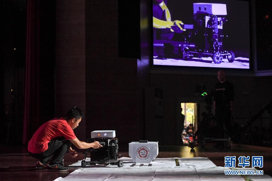 10月21日,在位于安徽合肥的中國(guó)科學(xué)技術(shù)大學(xué),“人五成影”隊(duì)帶著皮影戲機(jī)器人參加比賽。新華社記者張端攝