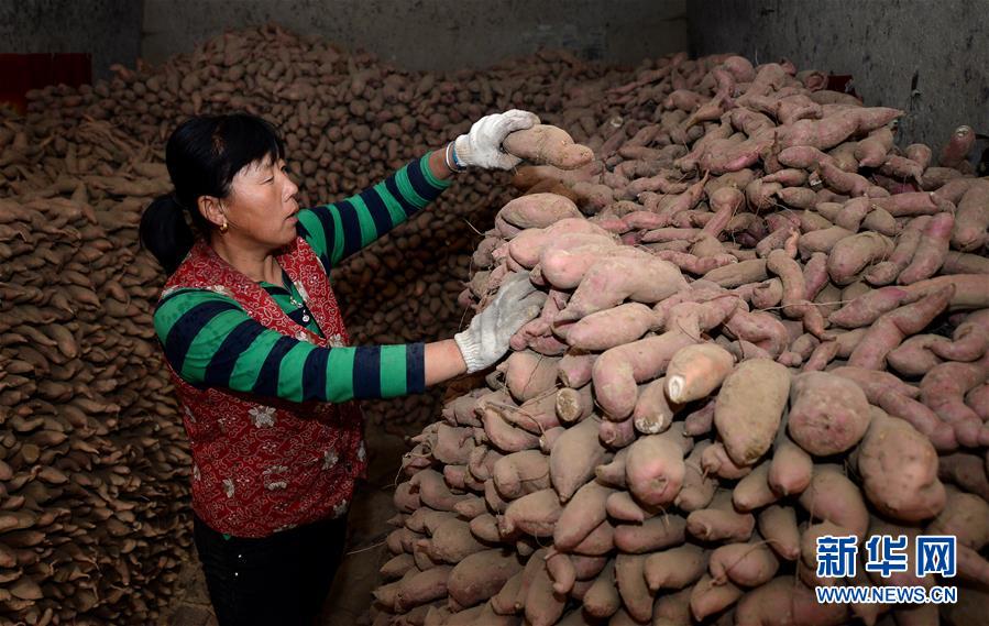 10月17日,陜西延安甘谷驛鎮(zhèn)史家溝村村民在整理剛收獲的紅薯。 金秋時節(jié),農(nóng)民們忙著收獲成熟的農(nóng)作物,喜迎豐收。 新華社記者 劉瀟 攝
