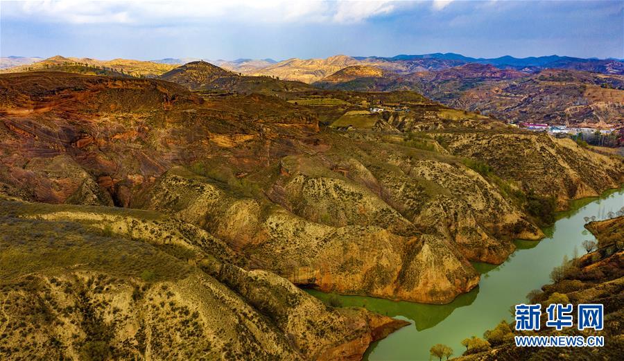 10月21日無(wú)人機(jī)拍攝的黃昏時(shí)分的王家灣丹霞地貌。 新華社記者陶明攝