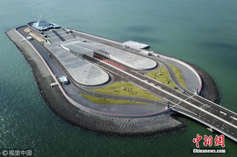 圖為2018年9月18日,強(qiáng)臺(tái)風(fēng)“山竹”吹襲香港過(guò)后,港珠澳大橋安然無(wú)恙。圖為位于香港海域的港珠澳大橋東人工島。李志華 攝 圖片來(lái)源:視覺(jué)中國(guó)