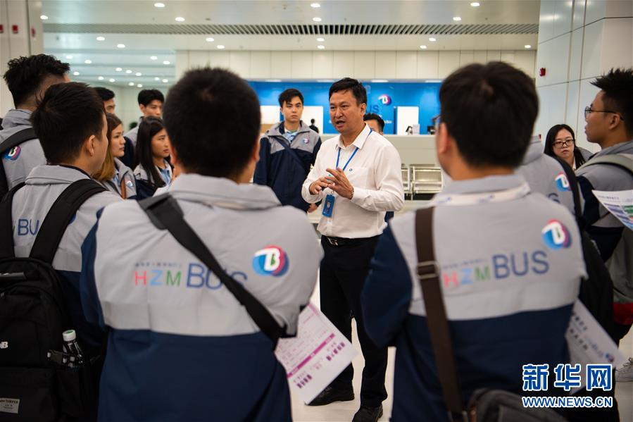 港珠澳大橋澳門邊檢大樓穿梭巴士員工在接受培訓(10月19日攝)。 港珠澳大橋?qū)⒂诒驹?4日通車運營,成為連接香港、澳門的新通道。記者19日驅(qū)車前往澳門口岸實地采訪,了解口岸內(nèi)部設(shè)置和準備工作情況。 新華社記者 張金加 攝