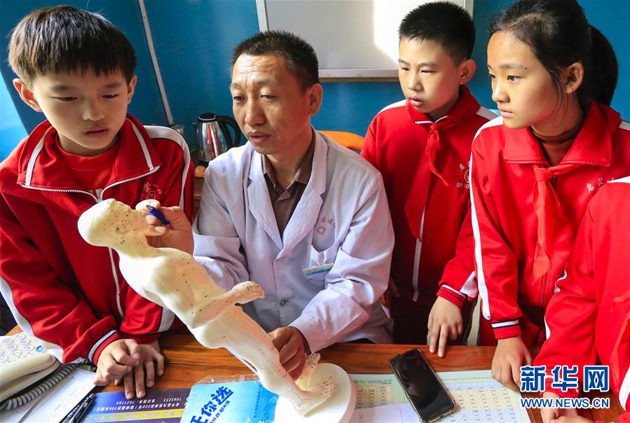 10月22日,安平縣中醫(yī)院醫(yī)生在教小學(xué)生認(rèn)識人體穴位。 當(dāng)日是世界傳統(tǒng)醫(yī)藥日,河北省安平縣啟蒙小學(xué)組織學(xué)生走進(jìn)安平縣中醫(yī)院,通過參觀中藥房、認(rèn)識常見中藥、感受中藥加工等方式,向小學(xué)生普及中醫(yī)藥知識,弘揚(yáng)傳統(tǒng)中醫(yī)藥文化。 新華社記者李曉果攝