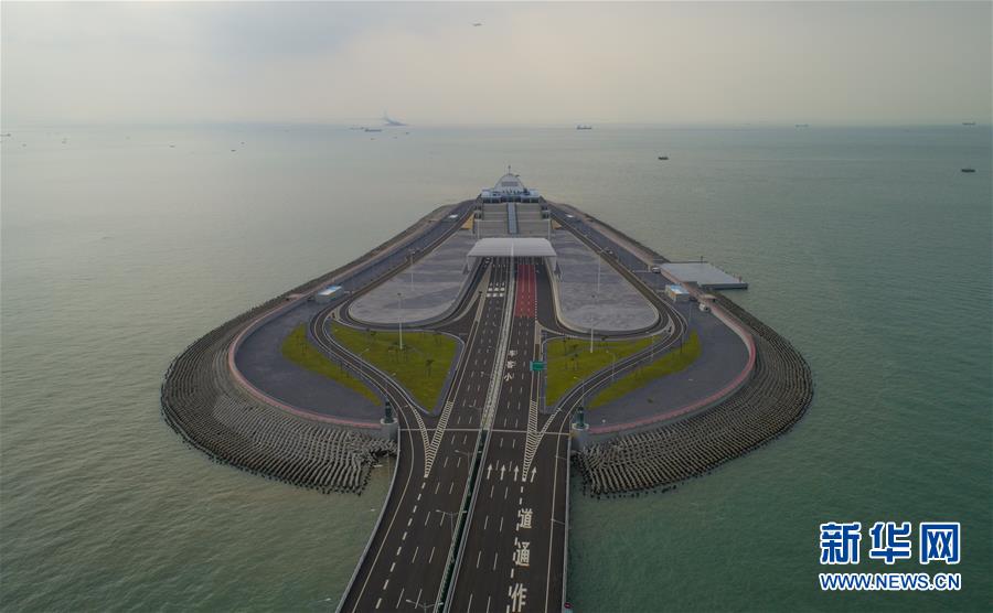 港珠澳大橋香港段人工島(10月13日無人機(jī)拍攝)。 即將于10月24日通車的港珠澳大橋跨越伶仃洋,在香港、珠海和澳門三地之間架起一條直接陸路的通道。港珠澳大橋香港段由東端的香港口岸人工島和向西連接大橋主體的12公里香港接線組成,是這一超級(jí)跨海通道的重要組成部分。 新華社記者呂小煒攝
