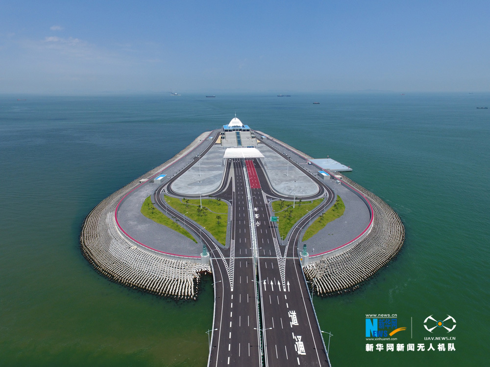 圖為新華網(wǎng)無人機隊航拍港珠澳大橋。新華網(wǎng) 伍嘉煒 攝