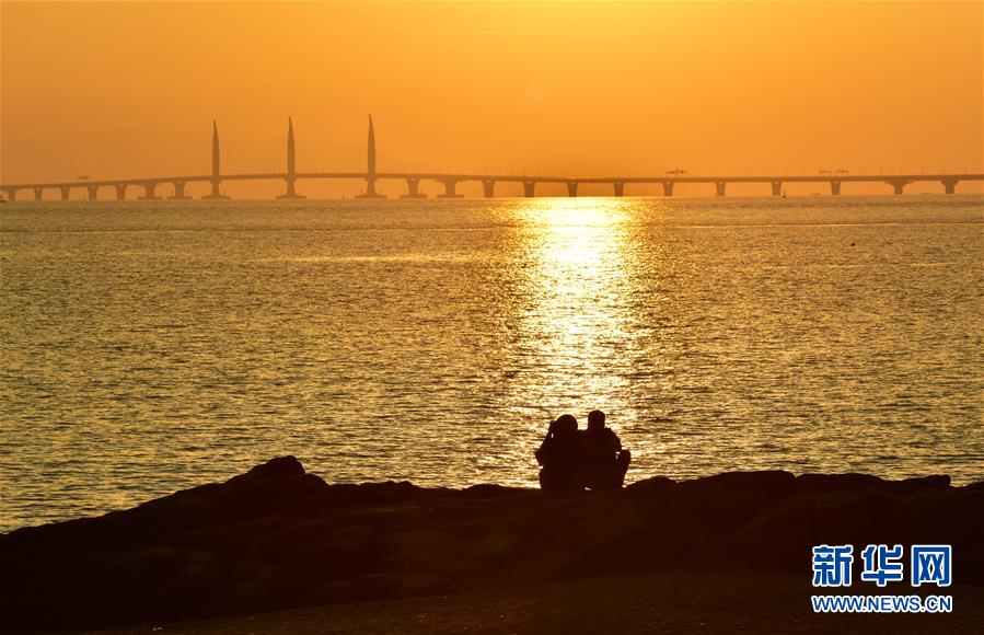 日出時分的港珠澳大橋(2018年10月22日攝)。 金秋十月,伶仃洋上海天一色、潮聲陣陣,依傍著這片中國南海水域的城市群迎來深具意義的一天。 10月23日上午,港珠澳大橋開通儀式在廣東珠海舉行,中共中央總書記、國家主席、中央軍委主席習(xí)近平出席儀式,宣布大橋正式開通。 碧波之上,一橋飛架香港、澳門、珠海三地,以氣貫長虹的“中國跨度”,飛越滄海百年的歷史風(fēng)云,展現(xiàn)當(dāng)代中國的雄健風(fēng)采。 新華社記者殷博古攝