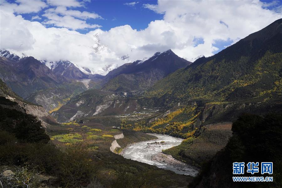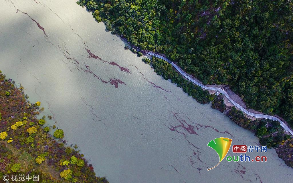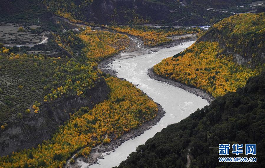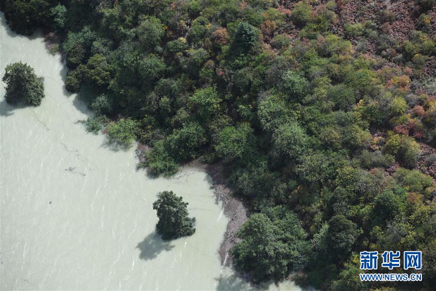 空中俯瞰通往加拉村已淹沒的公路(10月18日攝)。 新華社記者 普布扎西攝