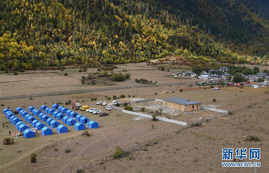 10月19日拍攝的在米林縣派鎮(zhèn)尼定村搭建的安置點(diǎn)。 記者從西藏自治區(qū)林芝加拉村雅魯藏布江堰塞湖災(zāi)情應(yīng)急搶險(xiǎn)工作第二場(chǎng)新聞發(fā)布會(huì)上獲悉,19日13時(shí)30分,雅魯藏布江米林縣堰塞體上游水位超過堰塞體,開始自然過流,上游水位正在緩慢下降。目前,各項(xiàng)搶險(xiǎn)救援工作正在有序開展。 新華社記者 覺果 攝