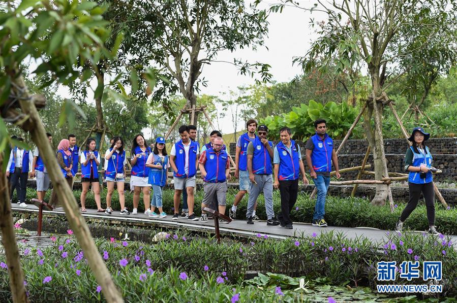 在??谑忻郎岷峪P翔濕地公園,參加濕地保護志愿服務講解員培訓的留學生志愿者一邊參觀一邊聽中國志愿者講解(10月21日攝)。 ??谑续P翔濕地公園內(nèi)流水潺潺,綠草如茵。很難想象,這個市民游客休閑散步的好去處、具有強大污水凈化功能的濕地公園,兩年前還是臭氣熏天、人們避之不及的垃圾堆填場。 把生態(tài)文明建設放到更加突出的位置,近兩年來??谑幸詽竦爻鞘薪ㄔO為突破口,不斷創(chuàng)新城市生態(tài)治理,著力改善生態(tài)民生,在生態(tài)文明建設上闖關(guān)探路。 新華社記者 楊冠宇 攝