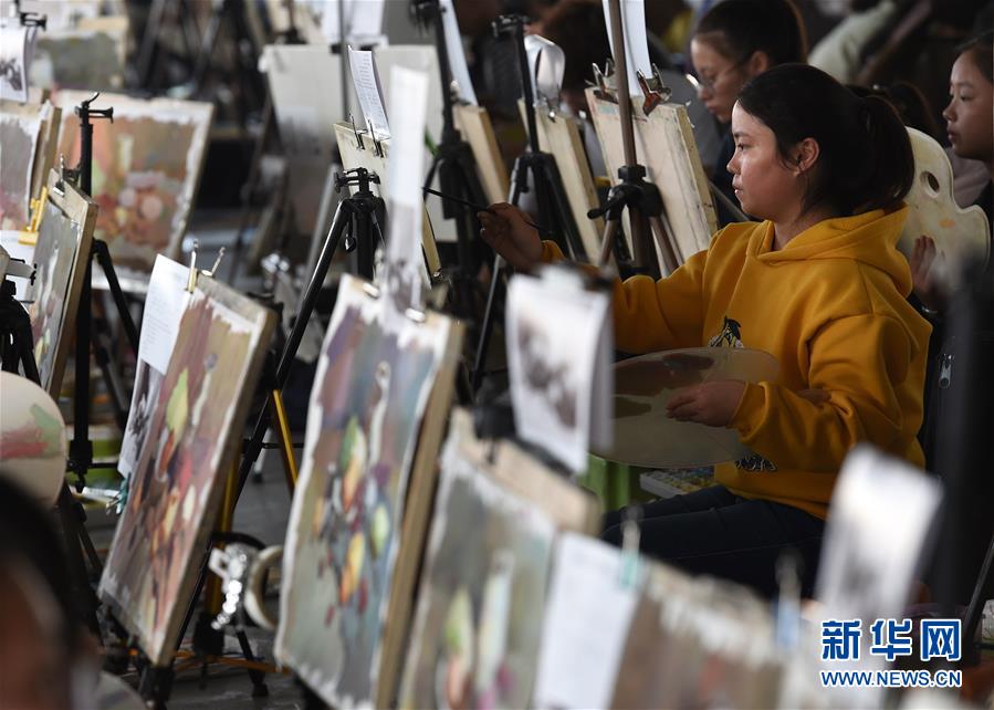 10月24日,考生在南京青藍(lán)畫室教學(xué)基地考點(diǎn)參加色彩科目模擬考試。 新華社記者孫參攝