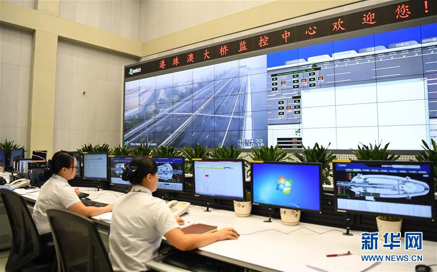 港珠澳大橋監(jiān)控中心(2018年10月10日攝)。 金秋十月,伶仃洋上海天一色、潮聲陣陣,依傍著這片中國南海水域的城市群迎來深具意義的一天。 10月23日上午,港珠澳大橋開通儀式在廣東珠海舉行,中共中央總書記、國家主席、中央軍委主席習近平出席儀式,宣布大橋正式開通。 碧波之上,一橋飛架香港、澳門、珠海三地,以氣貫長虹的“中國跨度”,飛越滄海百年的歷史風云,展現(xiàn)當代中國的雄健風采。 新華社記者鄧華攝