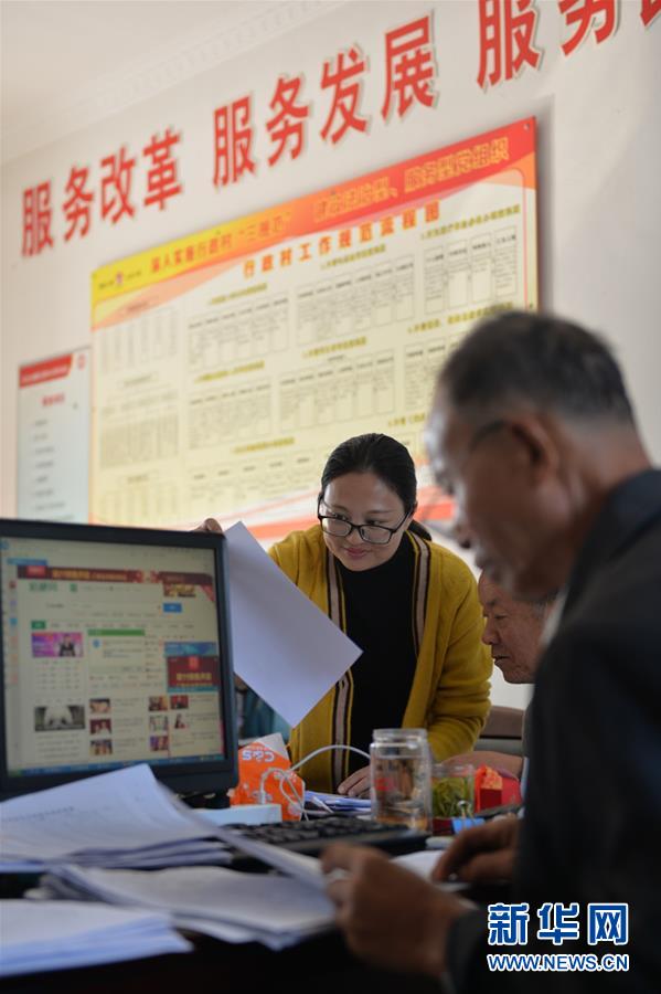 開弦弓村婦女主任周春燕(左一)在村部和同事們一起處理村務(10月23日攝)?!?0后”周春燕是土生土長的開弦弓村村民,大學畢業(yè)后回村工作,每天活躍在村里的大街小巷。 新華社記者 尹棟遜攝