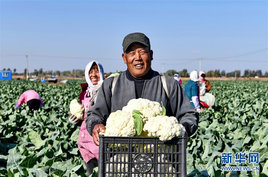 10月29日,樂(lè)亭縣馬頭營(yíng)鎮(zhèn)馬頭營(yíng)村的農(nóng)民在收獲菜花。