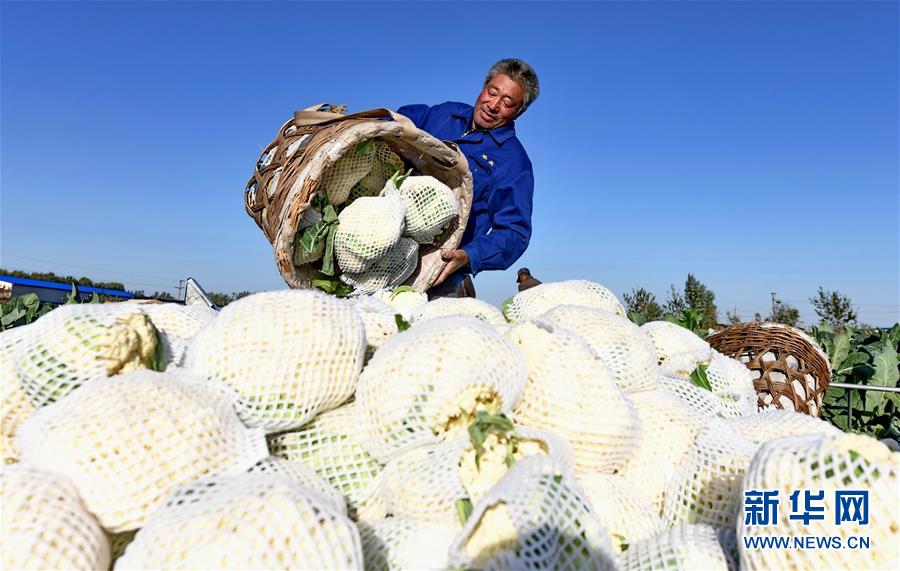 10月29日,樂亭縣馬頭營(yíng)鎮(zhèn)馬頭營(yíng)村的農(nóng)民在收獲菜花。