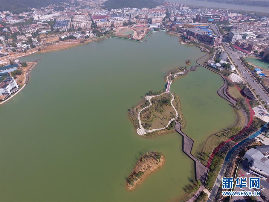 空中俯瞰長(zhǎng)沙后湖(10月29日無人機(jī)拍攝)。 近日,湖南長(zhǎng)沙后湖水環(huán)境綜合整治工程全面完工,沿湖生態(tài)環(huán)境舊貌換新顏,成為市民游客休閑散步的好去處。 新華社記者 龍弘濤 攝