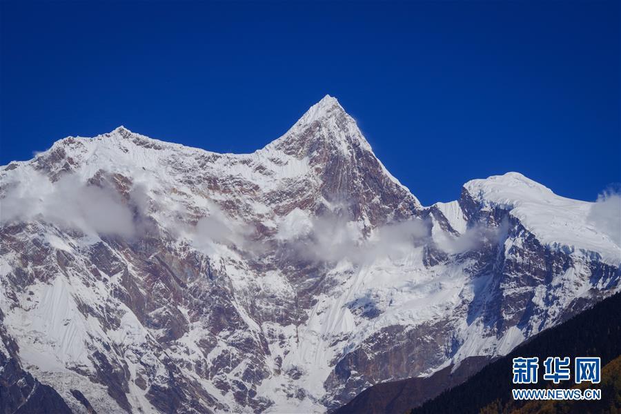這是在西藏林芝市米林縣境內(nèi)拍攝的南迦巴瓦峰(10月30日無人機(jī)拍攝)。 新華社記者 劉東君 攝