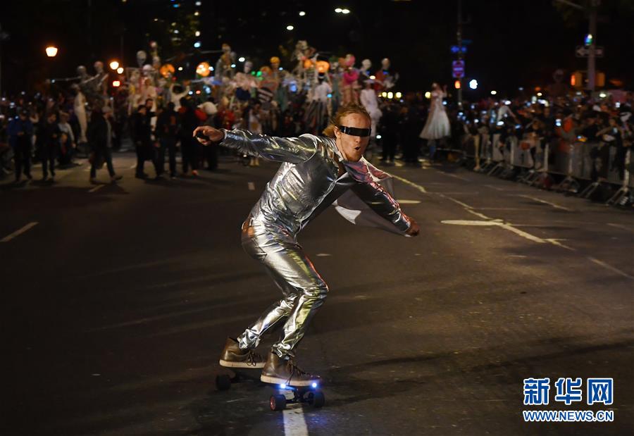 10月31日,在美國紐約曼哈頓,一名男子參加萬圣節(jié)大游行。