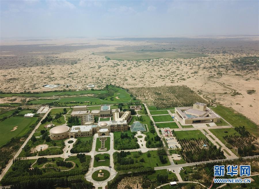 內(nèi)蒙古鄂爾多斯市恩格貝生態(tài)旅游區(qū)(6月8日無(wú)人機(jī)拍攝)。 新華社記者彭源攝