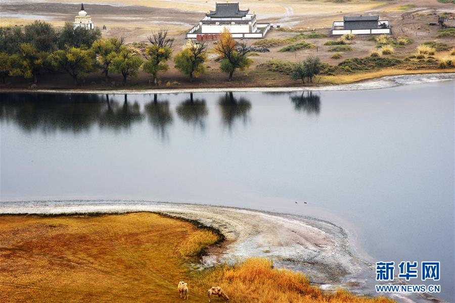 巴丹吉林廟位于名為“廟海子”的湖泊旁(10月19日攝)。 巴丹吉林沙漠位于內(nèi)蒙古西部阿拉善盟,是中國(guó)第三大沙漠,沙丘起伏的曲線陡變成高聳的沙山,碧藍(lán)的湖泊散落在沙海間。 新華社記者 李仁虎 攝