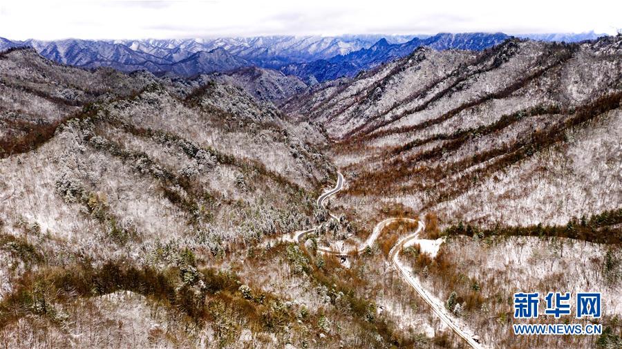 11月5日無人機(jī)拍攝的陜西省漢中市佛坪縣涼風(fēng)埡景區(qū)雪景。