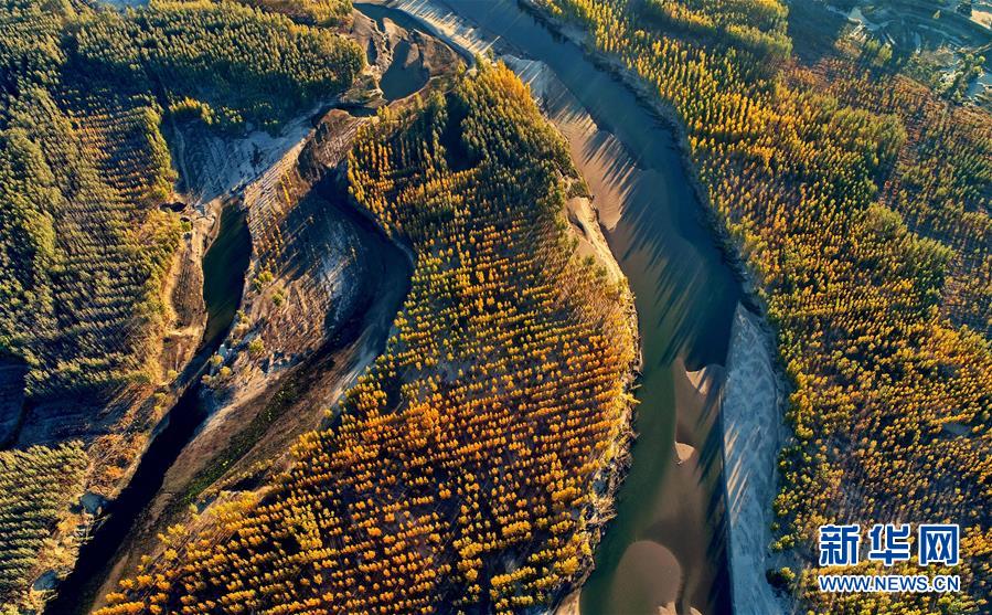 這是河北省樂(lè)亭縣境內(nèi)的灤河秋色(11月6日無(wú)人機(jī)拍攝)。