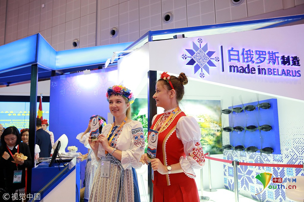2018年11月6日,上海,首屆中國國際進(jìn)口博覽會(huì)國家展上,共有82個(gè)國家、3個(gè)國際組織設(shè)立了71個(gè)展臺(tái)。白俄羅斯館。視覺中國