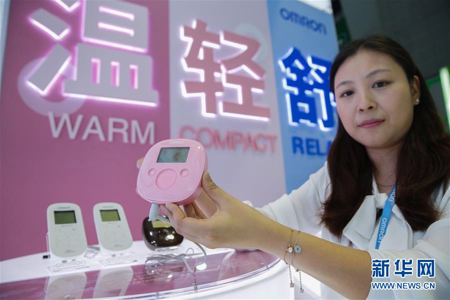 11月6日,日本歐姆龍公司工作人員展示首次在中國亮相的新款溫?zé)岬皖l治療儀。該款產(chǎn)品搭載國際疼痛學(xué)會(huì)定義的能有效緩解女性生理痛的按摩頻率。 新華社記者 張玉薇 攝
