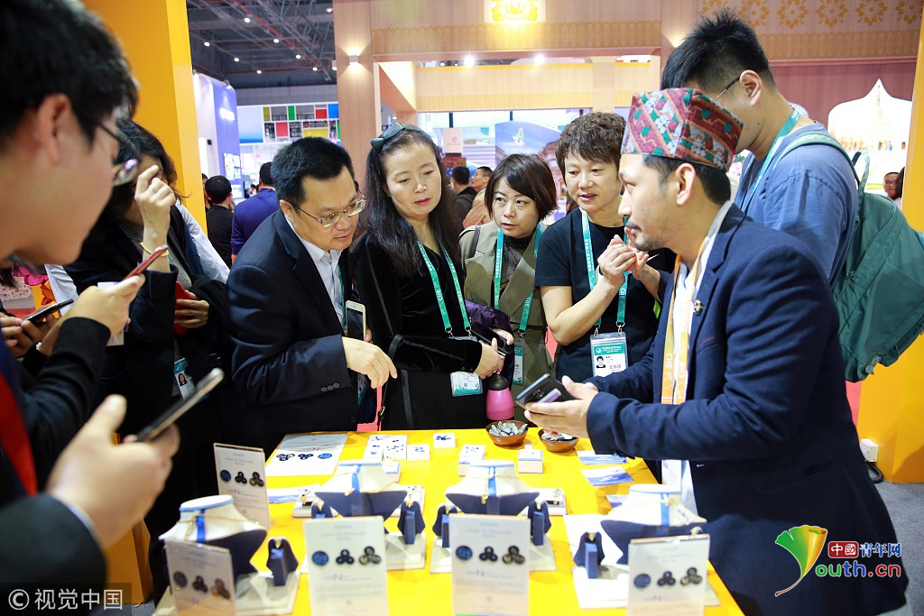 2018年11月6日,上海,首屆中國國際進(jìn)口博覽會(huì)國家展上,共有82個(gè)國家、3個(gè)國際組織設(shè)立了71個(gè)展臺(tái)。尼泊爾館。視覺中國