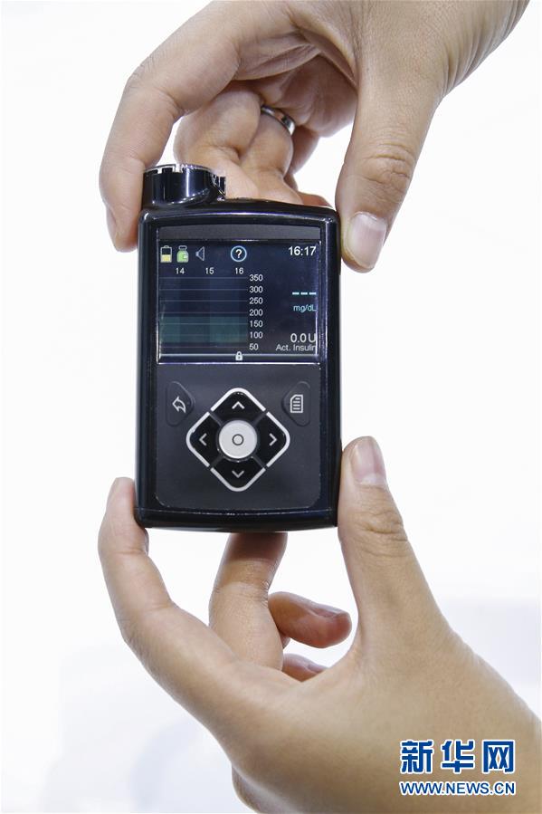 11月6日,美國(guó)美敦力公司工作人員展示采用智能算法的混合閉環(huán)胰島素泵。該產(chǎn)品能夠根據(jù)實(shí)時(shí)動(dòng)態(tài)血糖曲線(xiàn)調(diào)整基礎(chǔ)胰島素輸注,并且在低血糖事件發(fā)生前停止胰島素輸注,實(shí)現(xiàn)接近“人工胰腺”的功能。 新華社記者 張玉薇 攝