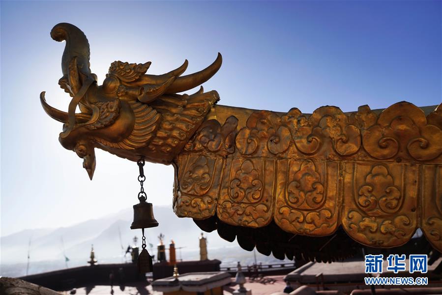 修繕后的布達拉宮金頂局部(11月7日攝)。 新華社記者普布扎西 攝