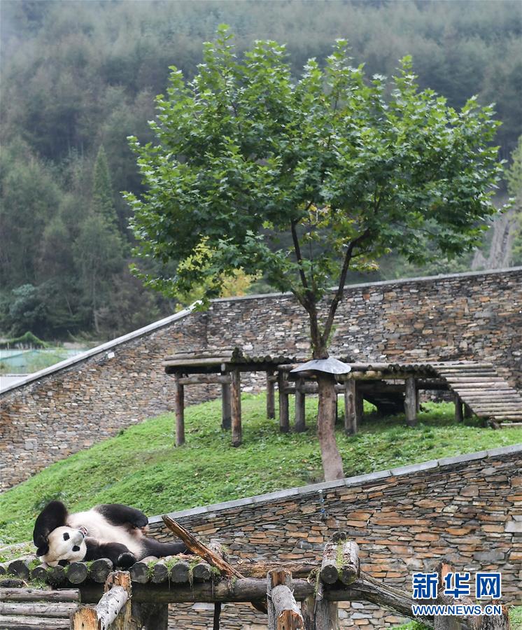 這是在中國(guó)大熊貓保護(hù)研究中心雅安碧峰峽基地拍攝的大熊貓(2017年10月13日攝)。