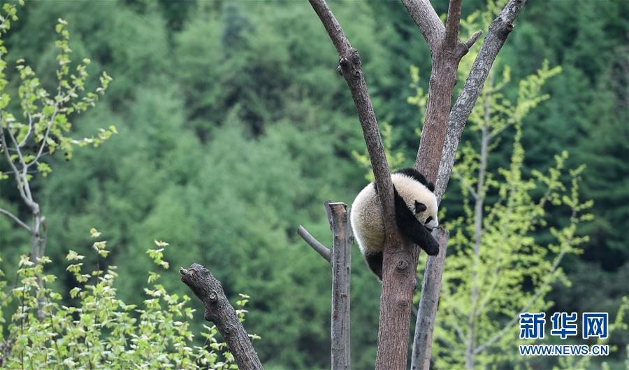 這是在中國(guó)大熊貓保護(hù)研究中心臥龍神樹(shù)坪基地拍攝的大熊貓(2018年4月25日攝)。 新華社記者 薛玉斌 攝