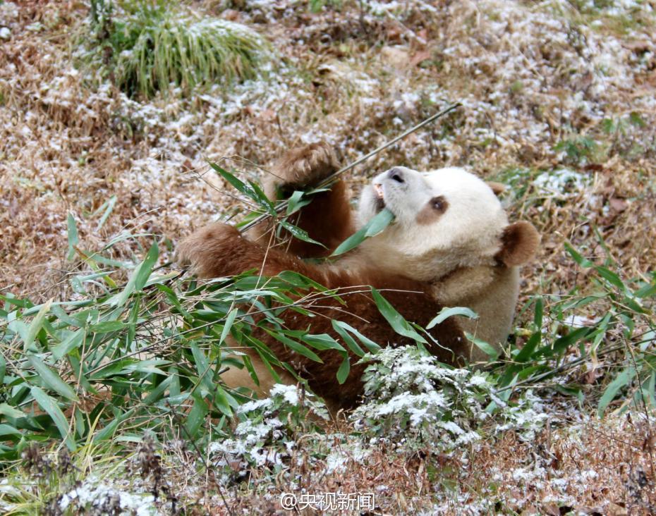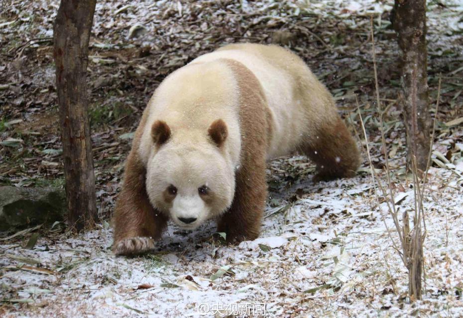 秦嶺大熊貓野化培訓(xùn)佛坪基地,7歲的棕色大熊貓七仔是目前全世界唯一能看到的棕色大熊貓活體。今年是它在基地過(guò)的第二個(gè)冬天,每逢下雪,七仔就興奮地滿園子跑,變身“雪花熊”。央視記者李志 王志杰 圖片來(lái)源:央視新聞官方微博