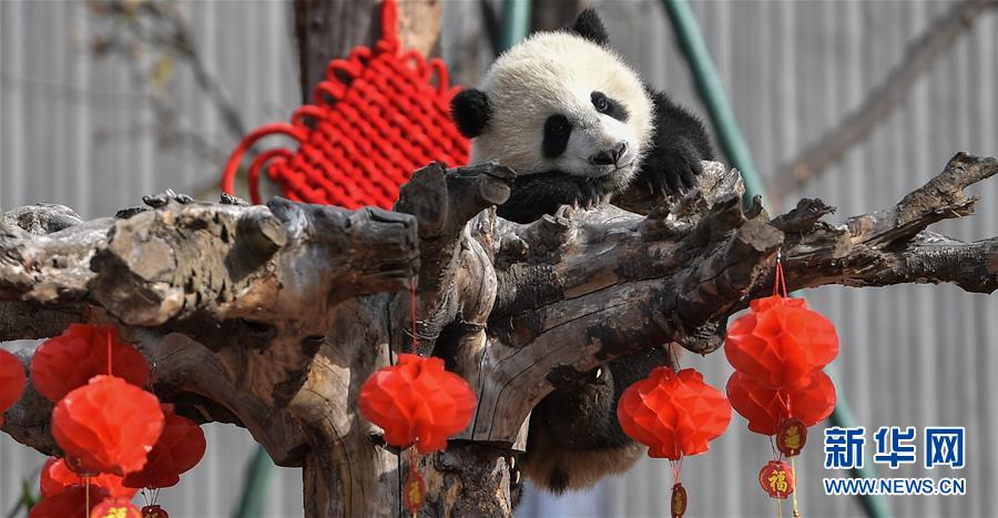 這是在中國(guó)大熊貓保護(hù)研究中心臥龍神樹(shù)坪基地拍攝的大熊貓(2018年2月15日攝)。 新華社記者 薛玉斌 攝