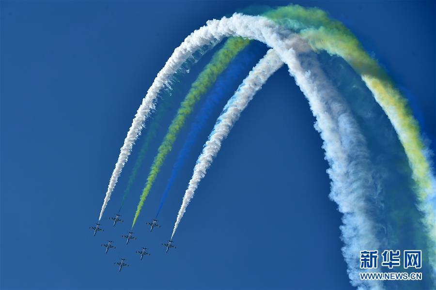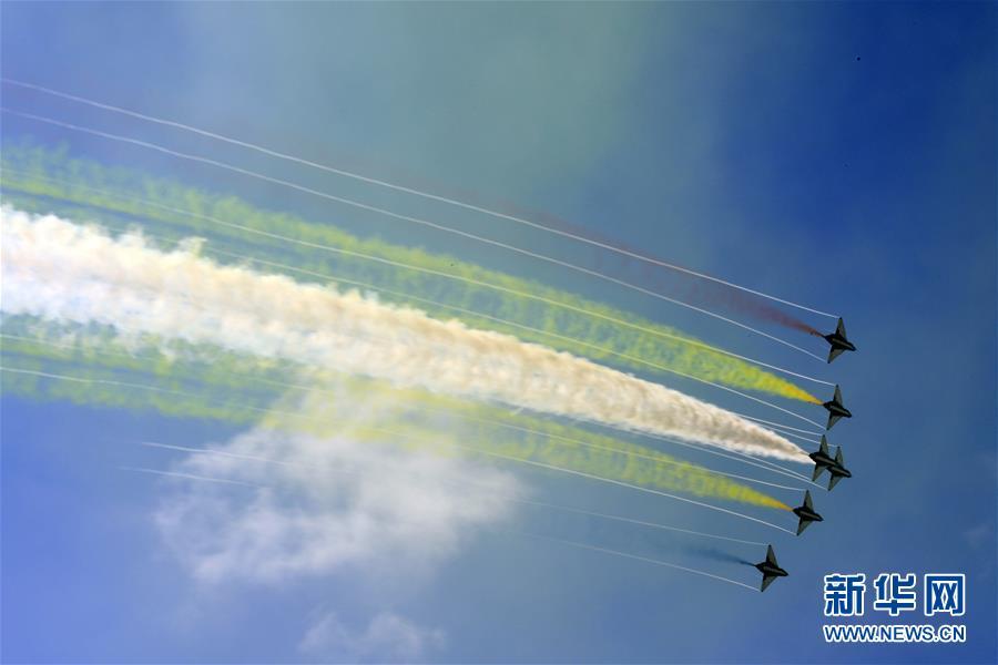 11月6日,中國空軍八一飛行表演隊(duì)在航展現(xiàn)場進(jìn)行飛行表演。當(dāng)日,第十二屆中國國際航空航天博覽會(huì)在珠海開幕。新華社記者鄧華攝
