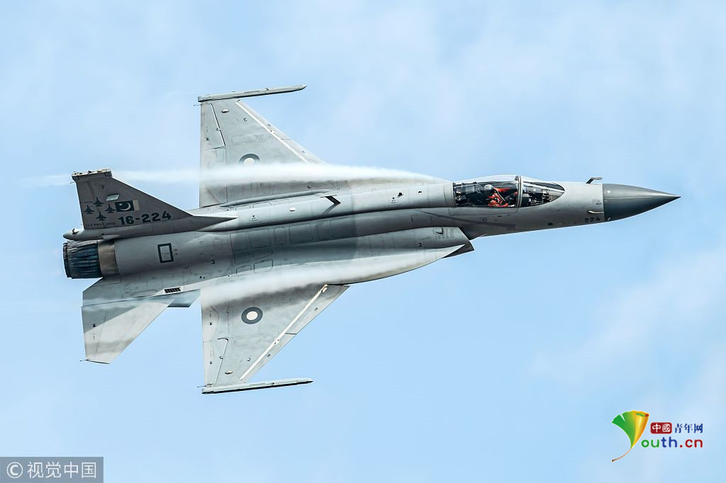 圖四:2018年11月6日,廣東珠海航展上,一架巴基斯坦空軍梟龍戰(zhàn)機(jī)進(jìn)行飛行表演。