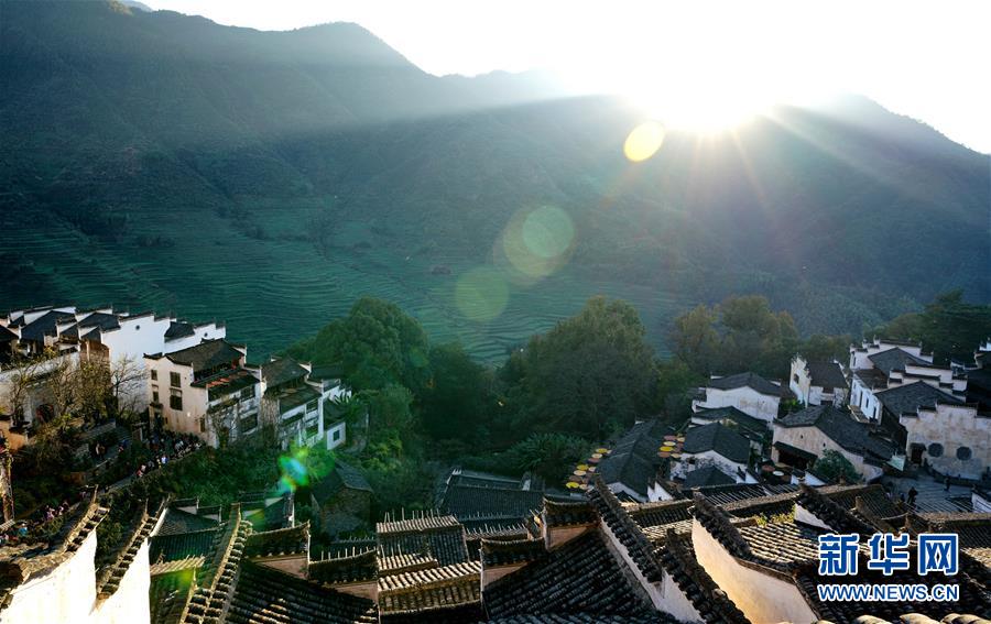 雨后放晴的江西婺源縣,藍(lán)天白云與依山傍水的徽派古村落形成了一幅幅美麗畫卷。