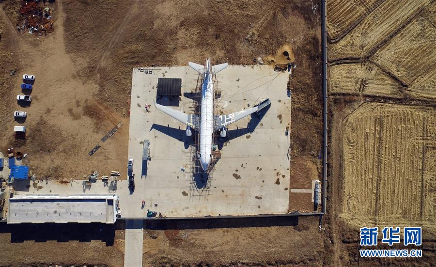 這是11月10日在遼寧開原老城街道前三臺子村拍攝的朱躍團隊手工制造的“飛機”(無人機拍攝)。 新華社記者 楊青 攝
