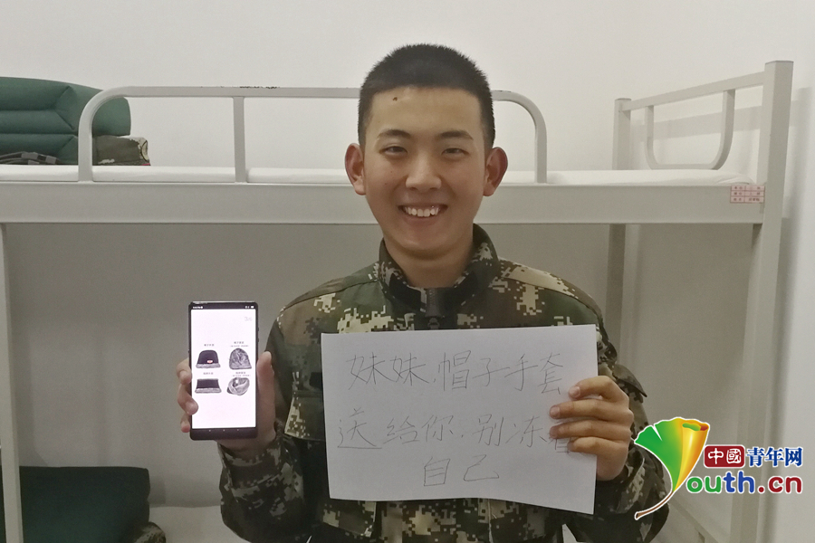 “俺們東北那旮瘩冬天特別冷,給妹妹買個(gè)防寒帽和棉手套,這樣上學(xué)就不會(huì)冷了?!蔽渚本┛傟?duì)執(zhí)勤第二支隊(duì)供圖。
