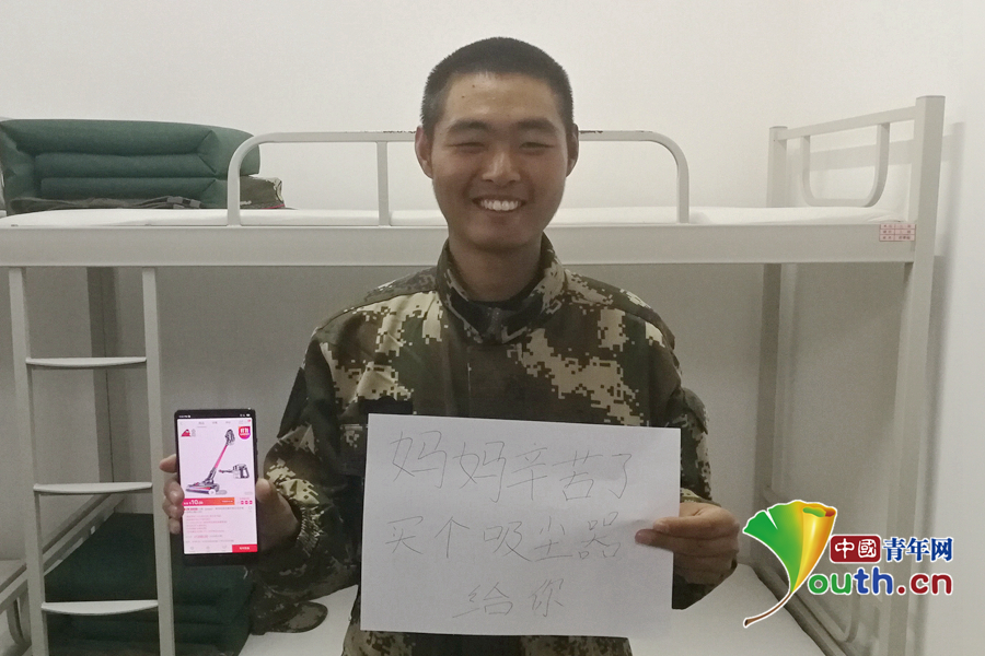 “媽媽每次打掃家務都很辛苦,買個吸塵器給她,讓她干家務時能輕松點。”武警北京總隊執(zhí)勤第二支隊供圖。